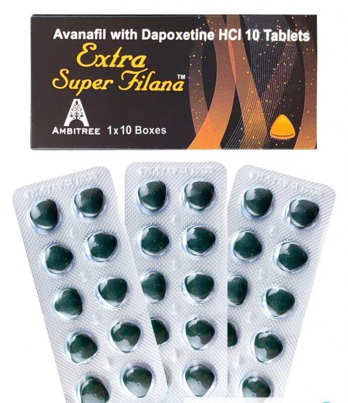 Extra Super Filana — комбинированный препарат для усиления эрекции и продления полового акта с повышенной дозировкой от индийского производителя. Препарат содержит в своем составе аванафил в дозировке 200мг, который обеспечивает очень мощную эрекцию в течение 6-8часов, и дапоксетин в дозировке 100мг, который продлевает половой акт в несколько раз без потери чувствительности.